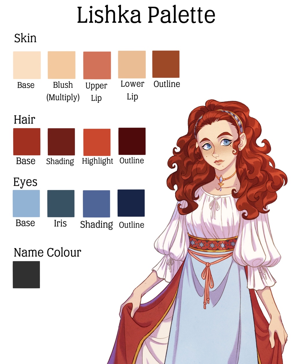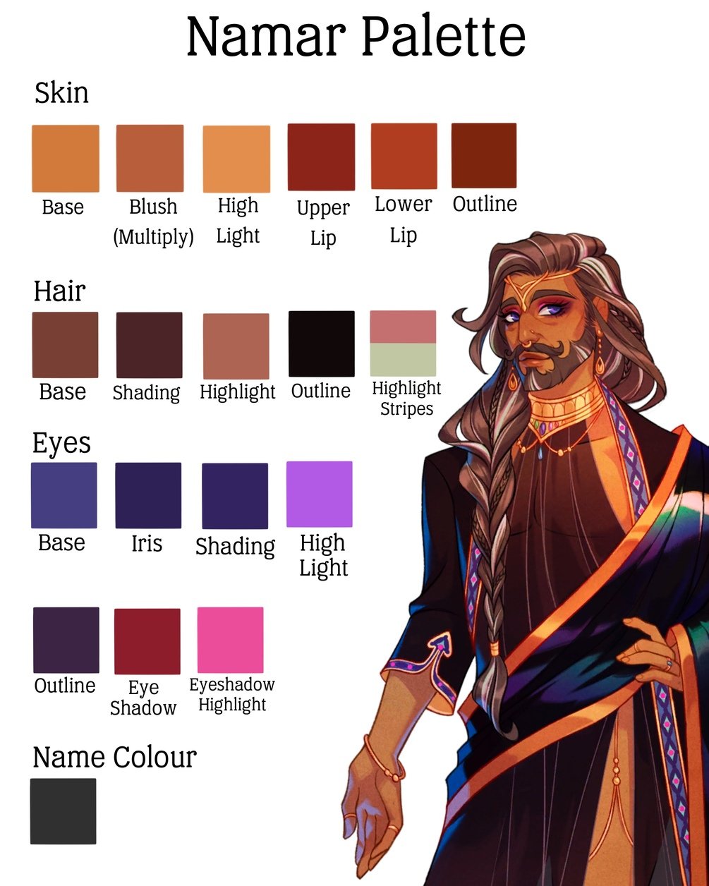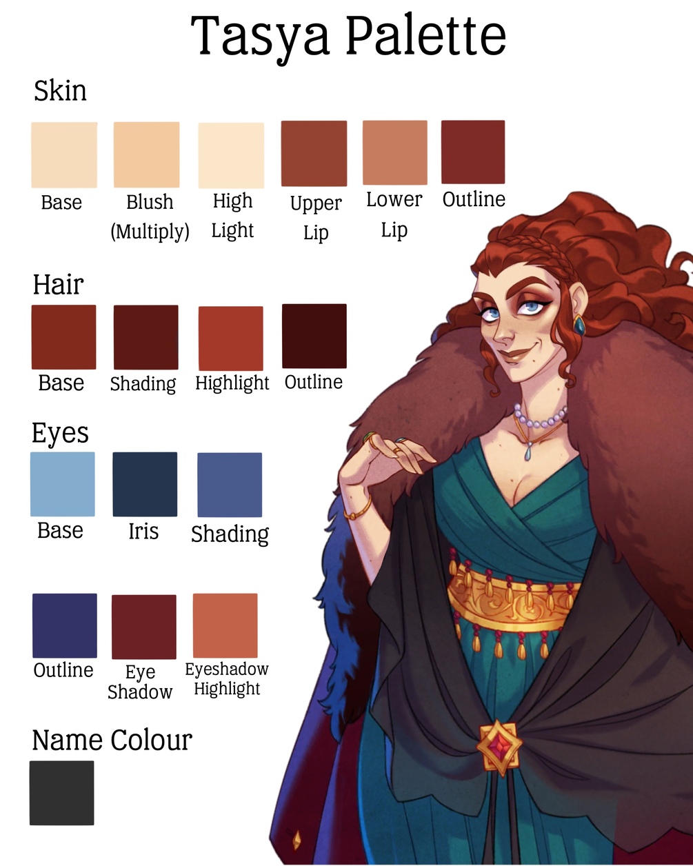 Free colour palettes for all the Parents/Parental figures of the Main 6 characters from the Arcana game, to be used as an art resource to help with colouring. Name colour is the characters name card in game. All the characters have the default colour. This is only digital download. There is no physical item.