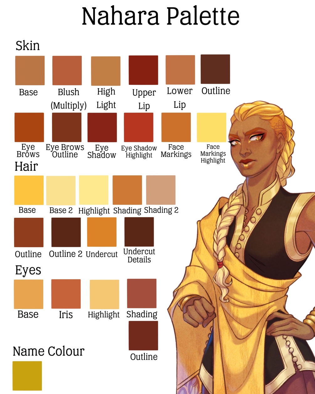 Free colour palettes for all the Satrinava sisters. To be used as an art resource to help with colouring. Name colour is character name card in game. This is only digital download. There is no physical item.