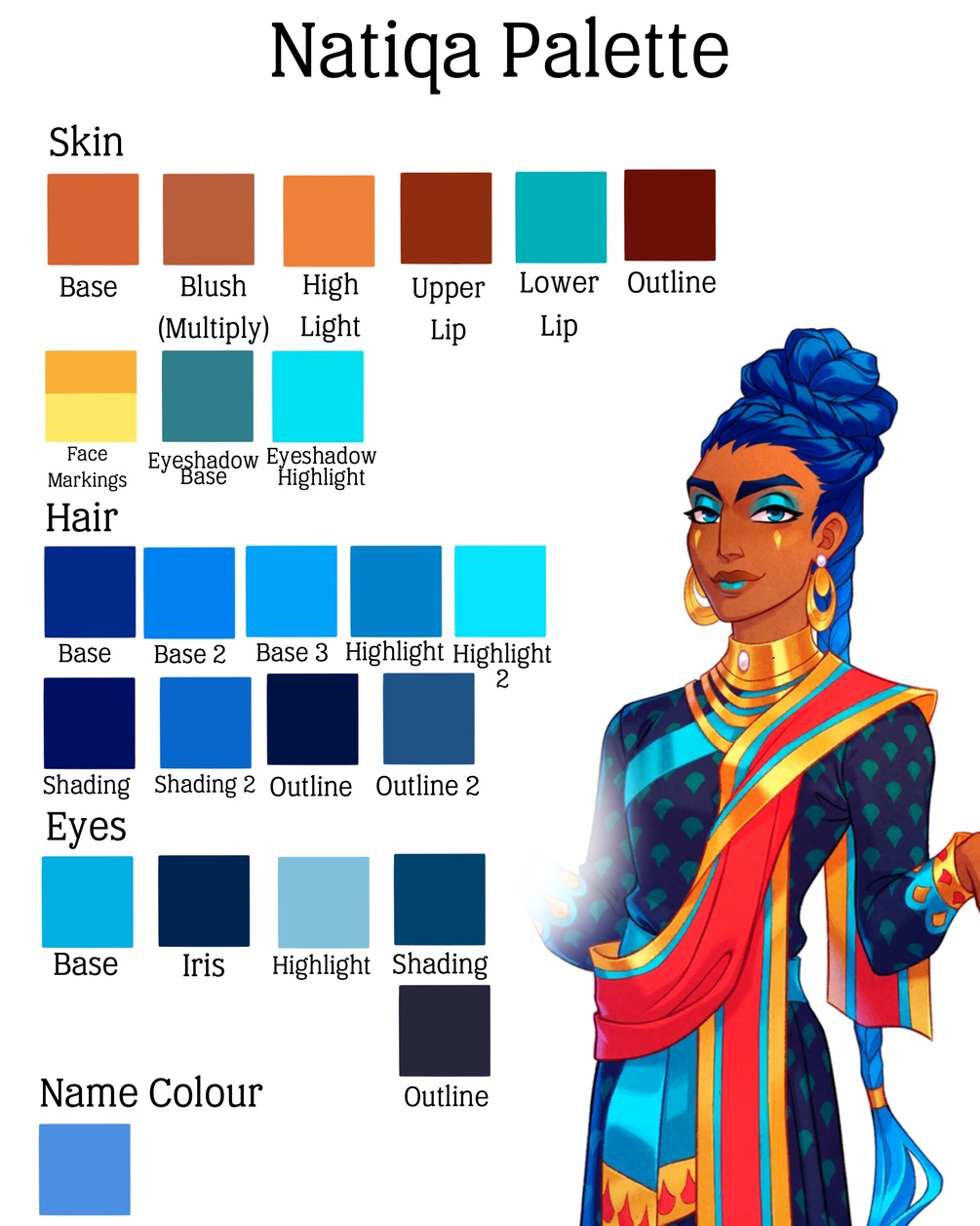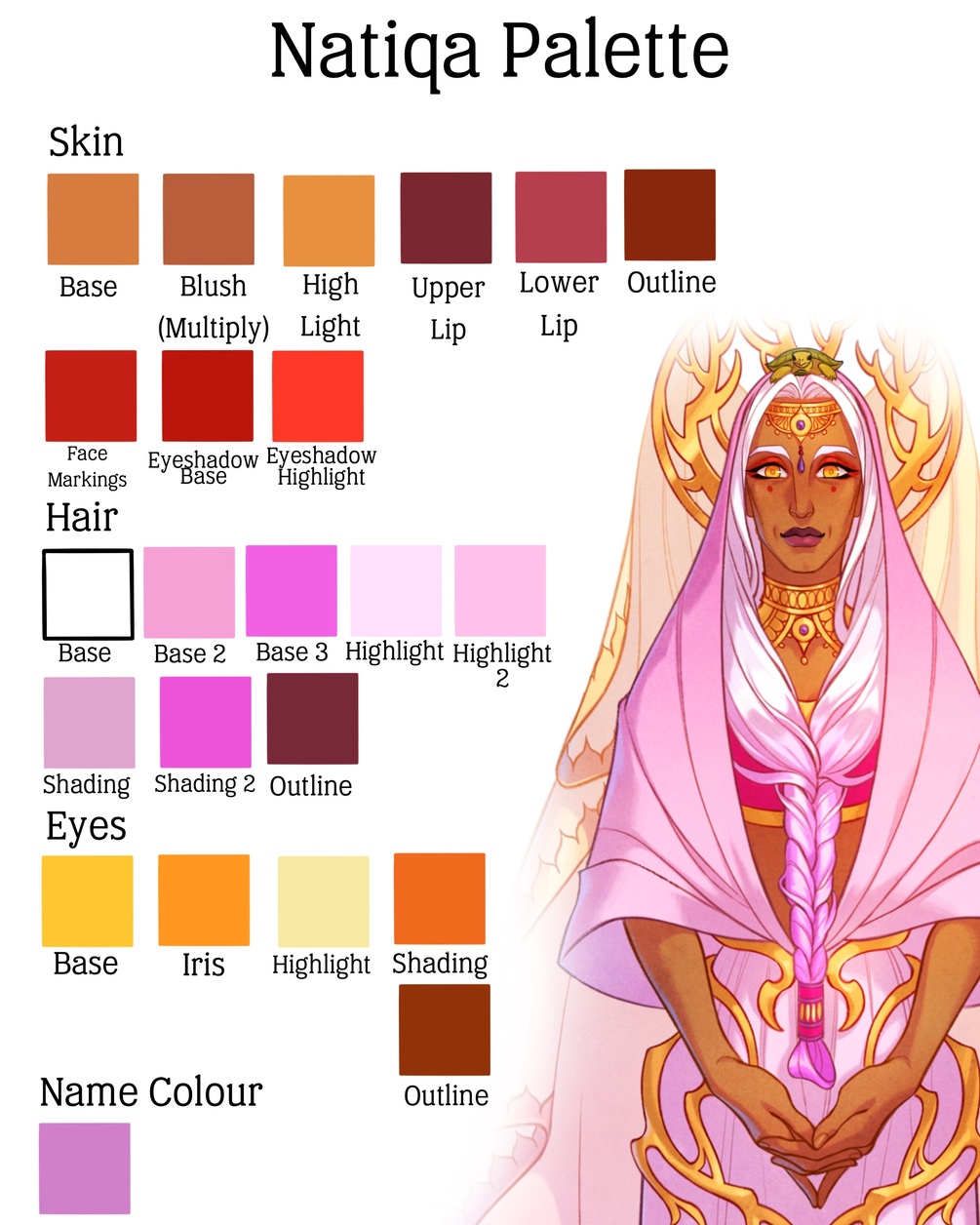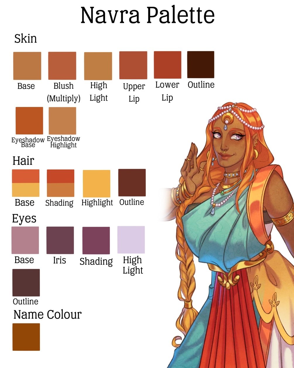 Free colour palettes for all the Satrinava sisters. To be used as an art resource to help with colouring. Name colour is character name card in game. This is only digital download. There is no physical item.